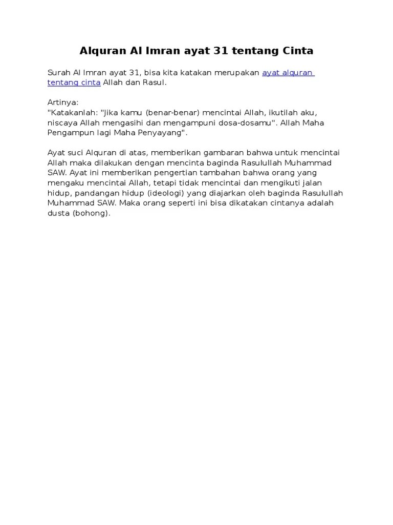 Langsung saja silahkan anda baca ayat ke 31 dari surat ali imran di .